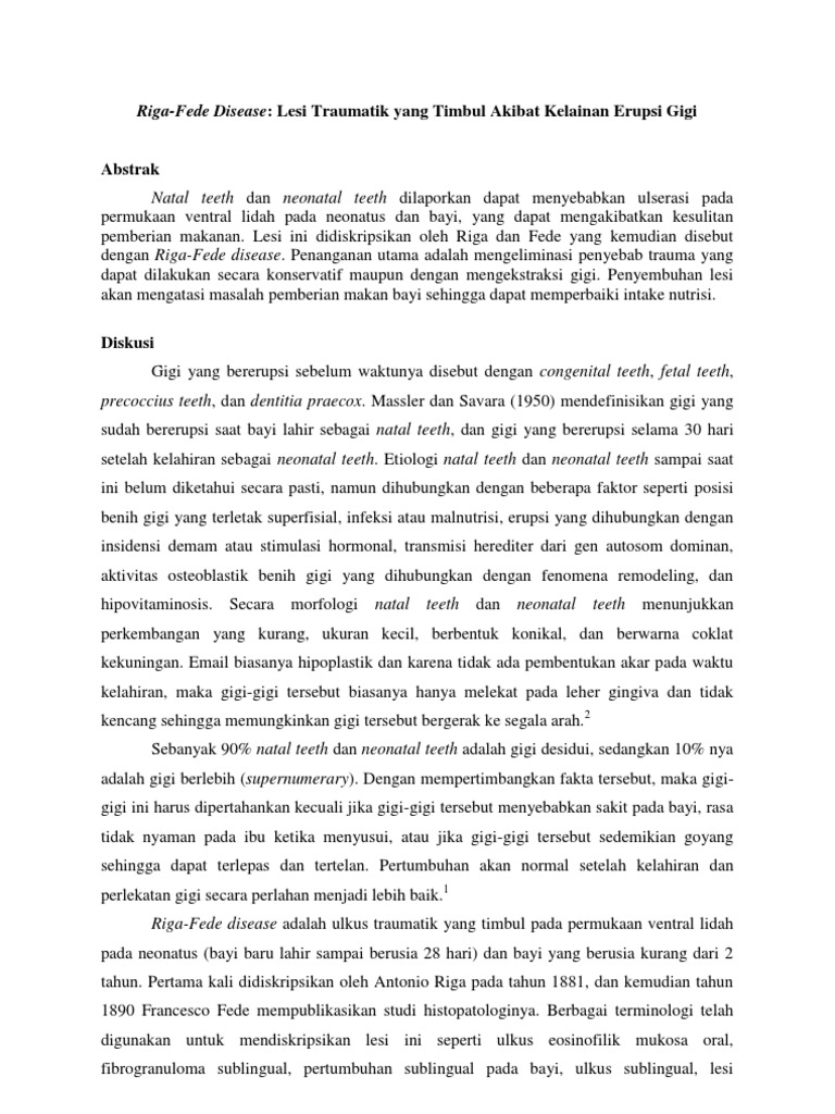 Atto congresso italiano di pediatria 1890. Free learning resources for students covering all major areas of biology. It is caused by trauma to the soft tissue from erupted baby teeth. Della produzione sottolinguale o malattia di riga. Laverne is a handy bioinformatics tool to help facilitate. Riga fede disease is a reactive traumatic mucosal disease characterized by persistent ulceration of the oral mucosa. It is caused by trauma to the soft tissue from erupted baby teeth. The ulcer may be uncomfortable but it is otherwise harmless. It can be described as a sublingual traumatic ulceration. Riga fede disease begins as an ulcerated area with prominent raised edges. Illness, condition, complaint, upset, infection, disorder, sickness, ailment.